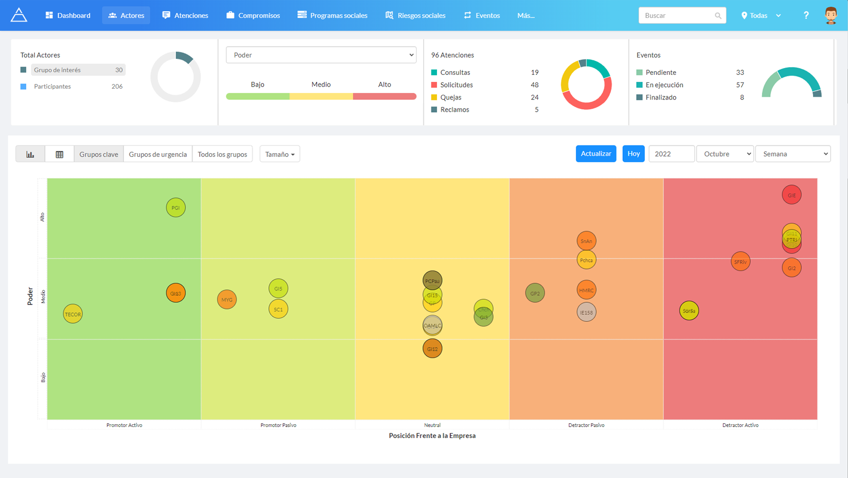 Mapeo de Actores: Recolecta información social compleja de tus grupos de interés y además mantiene un monitoreo en tiempo real de contextos dinámicos.